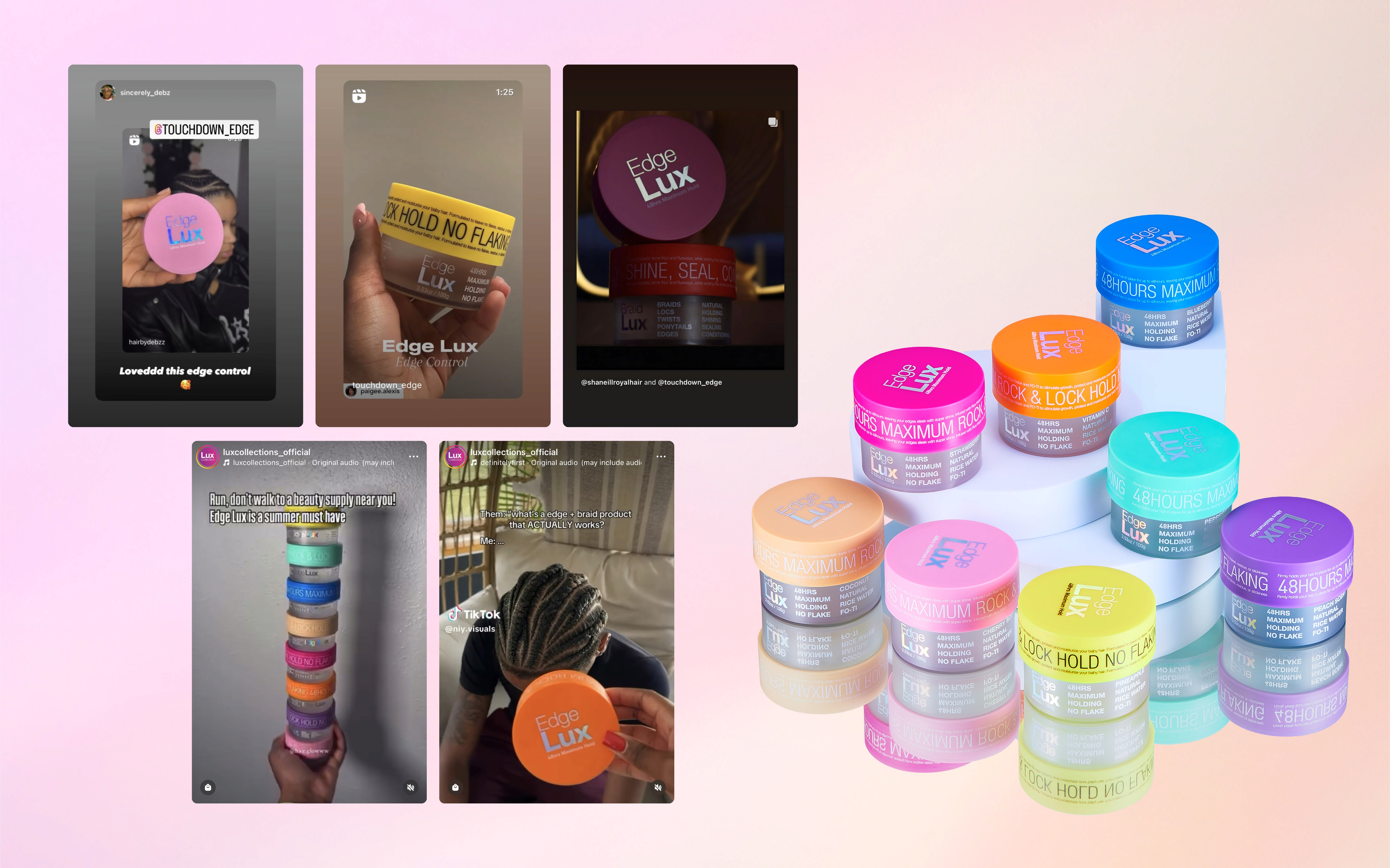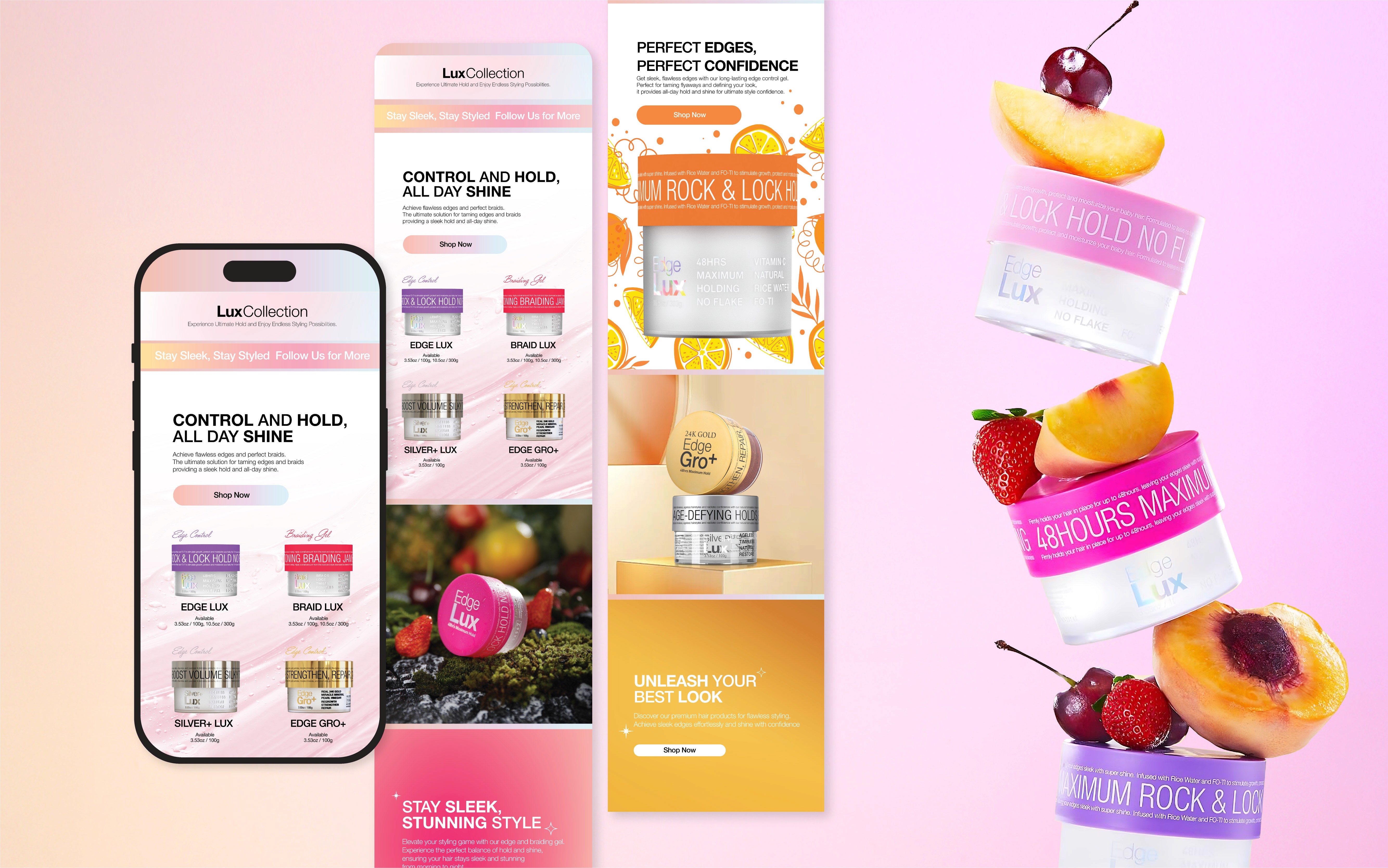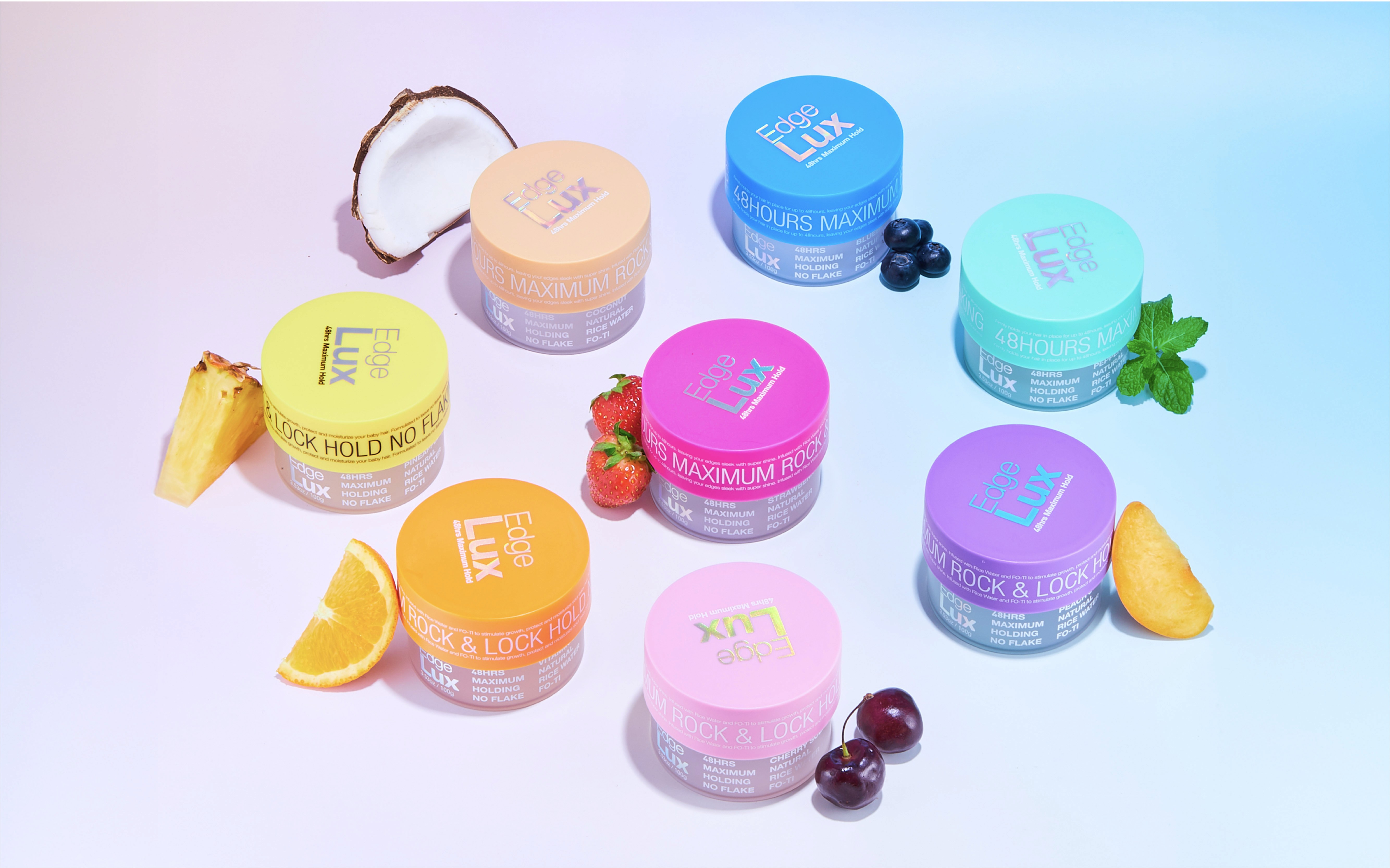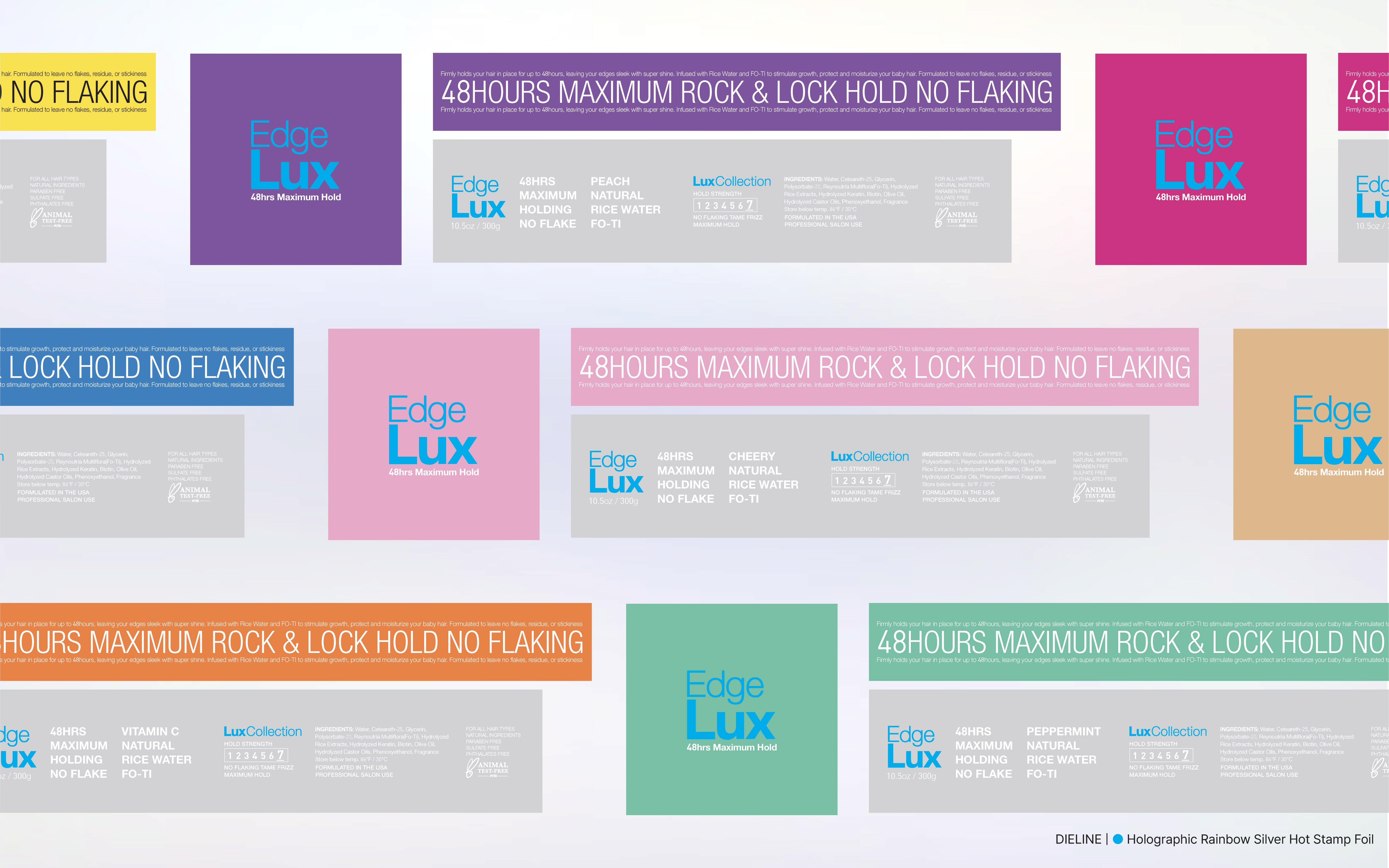 Edge Lux is a scented edge tamer created to offer a polished, luxurious finish at an accessible price. The line needed a visual direction that could express its variety of scents while keeping a unified look.
