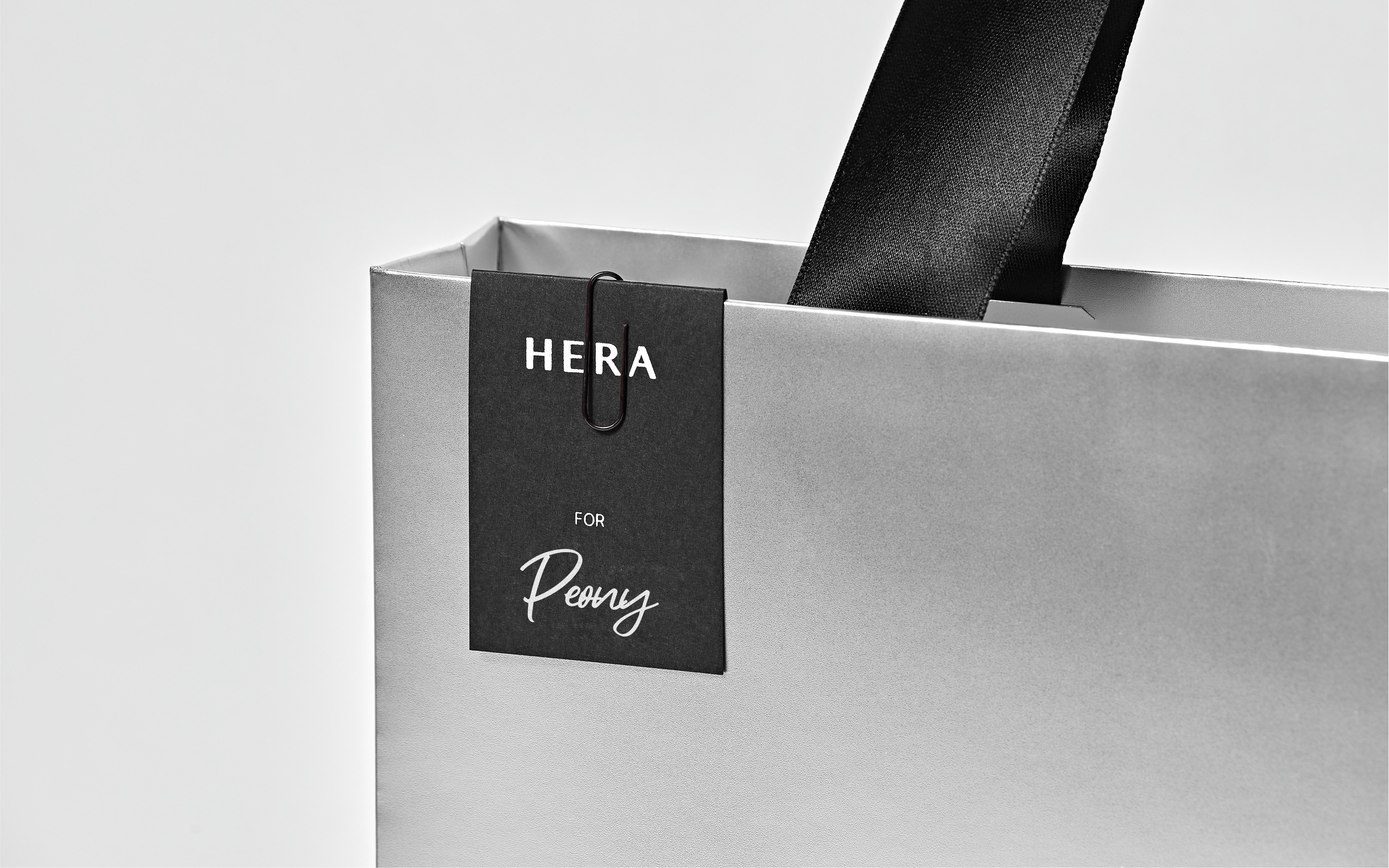 To mark the renewal of HERA’s Sensual Nude Balm, a press kit was designed to capture the feeling of a personal and refined gift through its presentation. The kit was paired with a matching shopping bag, each personalized with the recipient’s initials and name tag to make it feel more special. A silver ribbon printed with the HERA logo, matching the mood of the collection, was hand tied to both the kit and the bag to emphasize the feeling of a gift. Inside, the kit included an engraved balm with initials and the full set of renewed Sensual Nude Balms, offering a soft and elegant impression of the collection.